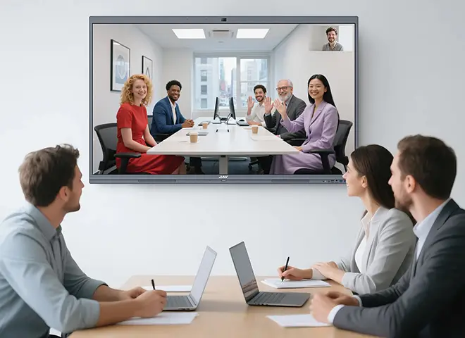 JAV Board functions like a giant iPad and It can meet various needs in meetings, including whiteboard writing, document display, annotation, video playback, live audio, remote video conferencing, etc.