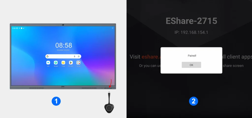 - Once the pairing is successful, remove the dongle from the smart board and plug it into your computer’s USB port.